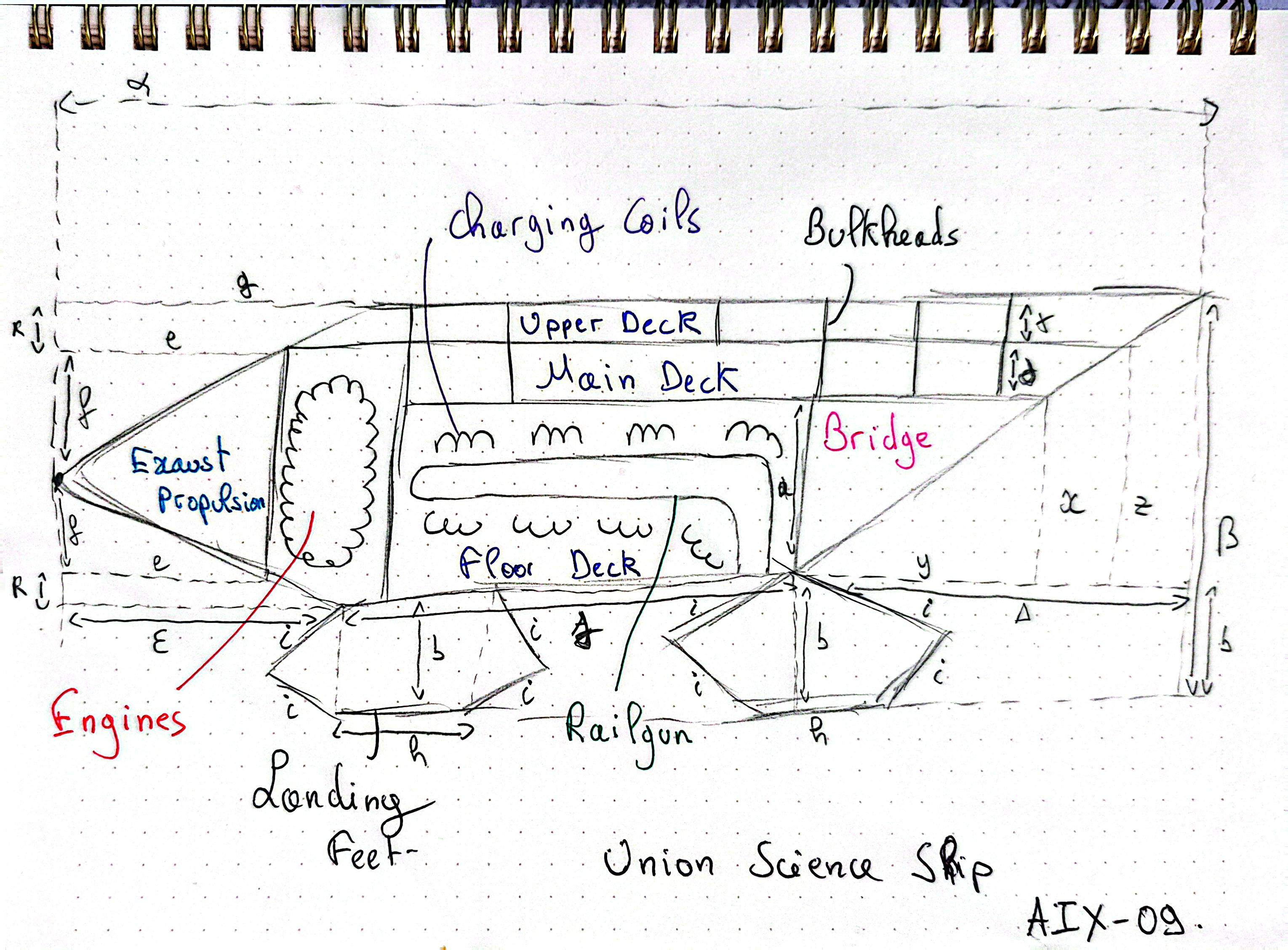 The holidays have been good for me, and I’m looking forward to start working again. I have so many ideas for the book and how to improve it. I even have a sketch of the vessel used by our protagonists, the Union Science Ship AIX-09 I will include these sketches at the end of this article. They are merely concept sketches for my head to concentrate, I have aphantasia and thus I am unable to form voluntary mental images, so I had to get on paper. Unfortunately, I am a scientist and not a skilled artist, so they are simple.
